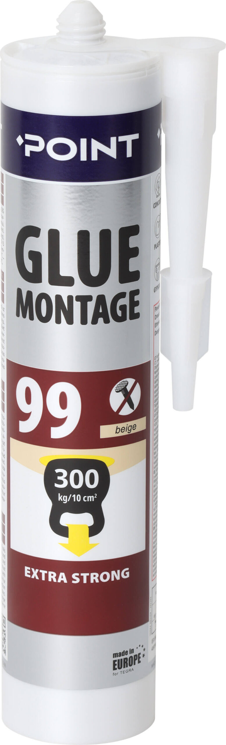 Universal, extremely strong mounting adhesive in beige color based on synthetic rubber with fast initial adhesion. It recommended for gluing many building materials during repair and construction work outdoors and indoors. Suitable for baseboards, thresholds, panels, sockets, mineral and stone wool, ceramic tiles, carpets, etc., for gluing finishing elements. After hardening, it forms an elastic and extremely strong seam. High tensile strength (adhesion force) – 30 kg. / cm2.